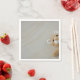En söt brun nalle ljuger sidovägar på en marmordisk räknare.