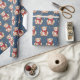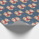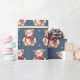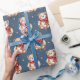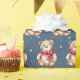 Vattenfärgad brun nalle med röd vinterscarf på vita stjärnor, snöflingor och blå bakgrund.