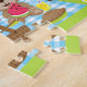 Cute björnar som har en picknick på en blå gingham trasa med smak som honung, vattenmelon, jordgubbsbär sylt, äpplen, citronad och paj. I bakgrunden är blå himmel och solsken, fjärilar och daisy ljusa. Grafik efter PixelPaperPrints och DigitalCurio