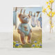 En söt nalle som hänger på en garderoll med fågel för pojke gratulerar. All text kan ändras.