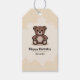 En märkre med en illustration av en nalle, allt på nedfläckadens beige bakgrund. Perfekt till dina gåvor till ett barn.