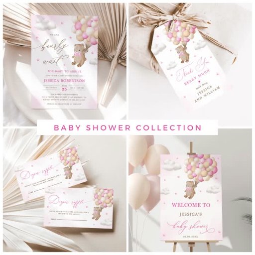 Teddy Bear with Pink Balloons Baby ShowerDesignad av A S