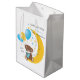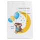 Kute och färglös dusch i pojke med en tecknad av adlig nalle med ett blått armband sitta på en sovande måne-ballonger i gult och blå och färglösa stjärnor. Underbart babydusch. Enkel att anpassa genom att ersätta texten med din egen.