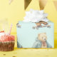 Nalle som kör ett skal presentpapper