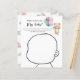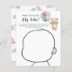 "Vi kan vänta tidigt". Fira med den här nallen, den där babyduschen party! Söt nalle med vattenfärg och färgstarka ballonger. Bakgrund med vattenfärgsblått rosa himmel. Matchande objekt är tillgängliga.
