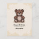 En födelsedagskort med en illustration av en nallebjörn mot en fläckig bakgrund och anpassningsbara texter med en kurvig linje: perfekt att skicka till ett barn eller att följa med en present!