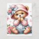 Nallen baby med rosa hatt och båge vykort