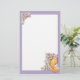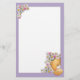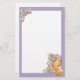 Gullig brevpapper med nallen och blommor med lilaramen.