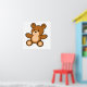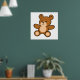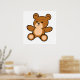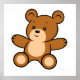 En vit poster med en söt, ljande brun tecknad nalle med den stekande sitta nedåt med armen utsträckt. Den här produkten har formaterats så att du kan anpassa din egen bakgrund.