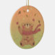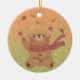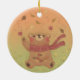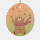 En söt illustration av en nalle som kastar färglöst höst löv i luft