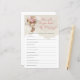 Är du redo för en spännande babydusch fylld med äventyr och roligt? Dö in i "Nalle Rosa How well Do You Know The Mamma"-spelkortet, speciellt designat för temat "We Can Barly Wait", perfekt för en flickdusch. Det här spelkortet kommer att utmana dina kunskaper om den mamma som ska visas och ge firande en lekfull beröring. Få redo för en upptäcktsfärd och skratt när du testar din förståelse för hedersgästen! Det här spelet kommer säkerligen att göra babyduschen till en oförglömlig upplevelse för alla inblandade. Kontakta mig för matchande objekt eller för anpassning, Ro Baby ©