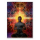 Mansitta med händer i Namaskar med färgrik strålpunkt tänder i bakgrund. Vid Daniel B. Holeman.