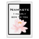 Ett balanserat svart- och vitt grafikkort med en rosa lotus blomma inuti och ord Namaste, jag böjer mig ödmjukt för dig. Namaste är vad man säger när man stöter på en annan människa. Med böner händer och en böna böjer vi oss för den anda vi inom oss alla.