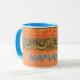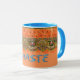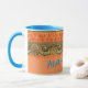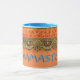 Fin orange och turkos Namaste-kaffe mugg med en fantastisk indisk design.