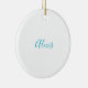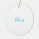 Name Calligraphy Script Plain Simple White Blue Julgransprydnad Keramik