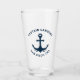 El diseño de Vaso de Cerveza con un diseño sencillo y elegante de estilo costero blanco y azul marino con Logotipo de ancla. Personalice el texto del personalizado con el nombre de su Capitan junto con su ubicación, ciudad y estado. Regalo Ideal para propietarios de botes con temática náutica. No lo piense y Adquiera este Lindo diseño de Vaso de Cerveza.