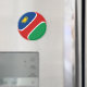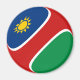 Namibias flagga har omsorgsfullt befunnit sig i passande till denna magnets cirkulär. Ett dekorativt sätt att främja den namibiska kulturen.