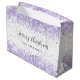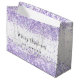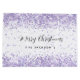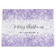 En vit snyggt som dekoreras med violett, lavender färgad faux konetti, gnistor. Anpassa och lägg till din familj namn. Text: God jul.