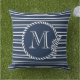 Namn Anchor Rope Navy Blue Monogram Kudde