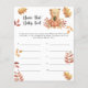 Fira med den här fallande nallen, den där babyduschen party! Söt nalle med vattendjup med höstpumpa i tassar på höstlövning. På baksidan av kortet finns höst löv. Matchande objekt är tillgängliga.