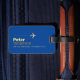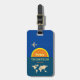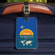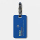 Personlig blå bagagetyp märkre med namn i en logotyp för snyggt, för att identifiera hans resbagage för luft