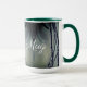 Snygg mugg med ditt namn på den. Det är lätt att sätta ditt namn på det med färg efter din smak och typsnitt som du väljer. Vackra frost, vinterfoto.
