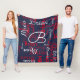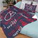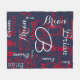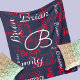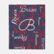 Röd och vit namn på en marin blå bakgrund med ett stort inledande brev