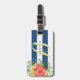 Blått och vit görade randig bagagemärkren med laxrosor och gula blommor.