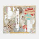 Bakgrund för kartan för vintagestilvärlden med rött, slösar och garvar mönstrade luftballonger, moln och en längst ner höger för kompassro. Denna filt presenterar också ditt personlignamn i mörkbruntet som märker över ett dekorativt band för vit.