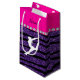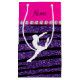 Modern, gigantisk, chic och trendig Anpassat namn lila zebra ränder mönster (inte äkta glitter) och med nybörjare glitter shock rosa (inte äkta diamanter), en vit gymnastik silhuette-rand som bara lägger till dina namngåvor eller monogramgåvor eller din personlig för en unik gåva. Gymnastikpresentidéer för kvinnor och flickor. Idealisk för gymnaster.