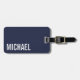 Namn i den marina blå moderna minimalistiska Perso Bagagebricka