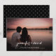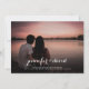 Med den här eleganten sparas datumkorten i namn i modern, vit kalligrafi, över ditt favoritfoto av er två. Kortets baksida har svart och vitt polka dots.