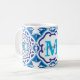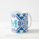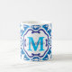 💙 Vackert blĂ„ Azulejos IV, mönster inspirerad av berömd portugisisk tippning, Azulejos. Perfekt som bodeka eller gĂ„va till trendiget. Anpassningsbarnas initialfas och namn. Kaffe Mugg med Azulejos
