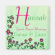 Söt grönt och rosa blommigt magnet med namn Hannah, vilket betyder tjänst och nåd.