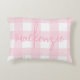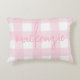 Anpassa denna rosa och vita, buffelkontroll mönster, bondgårdens stil kudde genom att lägga till en namn. Utformningen är densamma på framsidan och baksidan av kudden. Den här utformningen passar in i ett vardagsrum, en sovrum eller en daghem med ett lantgård, vår eller ett chic tema.