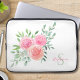 Detta monogrammade laptop sleeve dekoreras med vattenfärgade blommor och löv i nyanser av rosa, korall och grönt. Lägg till ditt namn och börja med att göra laptop sleeve unikt för dig. Ursprunglig vattenfärg © Michele Davies.