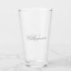 Detta glas har ett grått-skrivet efternamn i mörk över ett lätt grått monogram.