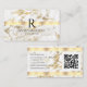 Namn & Monogram, QR-kod, White & Guld Marble Visitkort