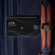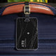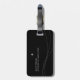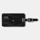 Ditt namn och initialer (serif font stil) med utformningen av tunn böjd linjer (simulerar flygvägar) på en elegant och modern märkre för svart resgods