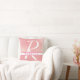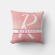 Ett monogram och en namn-kombination med en rosa vattenfärgsbakgrund.