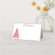 Det vikta namn-kortet visas i vitt baspapper med ett festive helgdag Julgran tryckt. Anpassa det här objektet eller köp som det är.