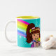 Ljusa och färgstarka regnbågar "ditt namn" barn prinsessan mörk hårflicka mugg. Perfektens gåva till ett levande barn. Mugg säger: Vår käraste prinsessan Katherine eller personifierar detta mugg med ord efter ditt val. Mugg designade enbart av Sarah Trett.