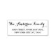Skapa din egen anpassningsbar, personlig, enkel, elegant, snyggt, familjens returadress trägummi frimärke. Ange ditt namn/din familj namn/företaget namn och adress. Perfekt för både hem- och affärsförsändelser, personliga försändelser och officiell. Elegant returadress frimärke för använda på födelsedagen, bröllop, giftermål-årsdagen, studenten, möhippa, babydusch, helgdagar eller någon annan speciell utsändning av familjens utskick. Underbar för inbjudan, kort, notekare, skrotböcker, presentkort, märkre som är pappra och mycket annat. Bläck-plattan ingår inte. Du kan välja mellan fem färgbaserade bläck-dynor i färg.