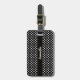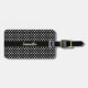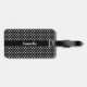 Bakgrunden är svart. Texten är vit. Mönster är vitt polka dots. Du kan anpassa bagagetaggen med valfritt namn. Vittext kan redigeras eller tas bort.
