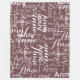 Namn tryckt i vitt över en eldtegel fleecefilt
