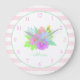 Blommigt väggklocka för flicka rum.Vår blommor: Kal- och lilaxtuliper, rosa kosmea, blå krokus, gult dandelionknoppar, grönt löv). Ljusa rosa rand. Anpassat namn. Enkel, färsk och söt, idealisk personlig för en babydusch eller nyfödd bebis.