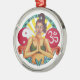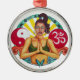 Sandra Gales ursprungliga konst på en rund ornament som visar en inspirerande design med tecknet för ohm, yin-yang och andra med en vacker kvinna som mediterar. En unik och färgstark design av andlighet som är perfekt för alla.
