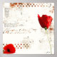 Olika skuggor och lagrar vitt, med en stänk av ljusröd design under sig, dyker två stora röda vallmo ut från biet med ord korn som är läsbar i bakgrunden