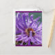 vykort, makrofoto av döende påskblomma, lodrät orientering, mörk lila gräns top och grund