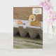 Grattis på namnsdagen liten kyckling och ägg i kartong äggkartong för förälder från förstfödd barn.